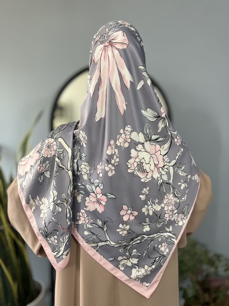 روسری جنس ابریشم ساتن طرح گل وپاپیون